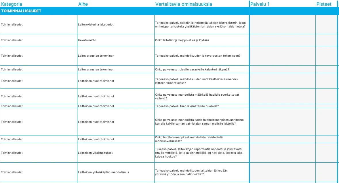 Lataa vertailutaulukko, joka auttaa vertailemaan erilaisia kalustonhallinnan ratkaisuja.